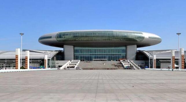 此外,一期工程还包括停车场4万平方米,门前广场2.5万平方米,园林绿化8.94万平方米。 长486米,宽130.5米。展馆采用大跨度张弦桁架,跨度108米,为国内第三大跨度。会议中心设计造型为椭球体明月,设计难度和人员容纳规模居全国同类建筑前列。